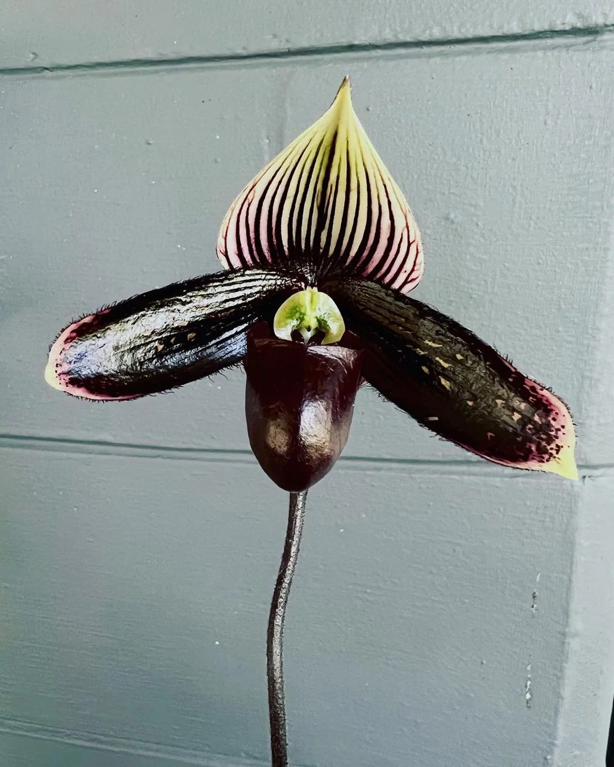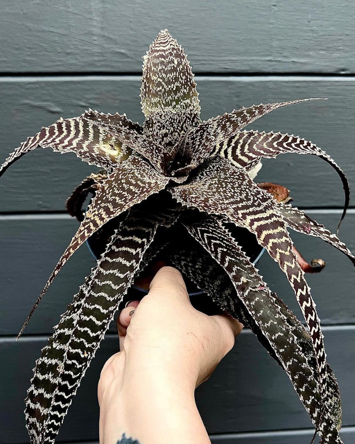 Johanna says, “I love plants that are dark and have texture. Some of these are Alocasia chantrieri, Anthurium luxurians, and Anthurium ace of spades.” Shannon adds, “Some of my favorite gothic plants are purple and white daturas, Begonia starry night, Cryptanthus zonatus (also known as ‘earth star’), Colocasia black diamond, Aechmea perez, Fritillaria persica, Ling Ling Ginger (Also called ‘Panda-faced ginger’), and black barlow columbine, and of course, Tacca chantrieri, the black bat flower!” Amanda tells us, “Obsessed with: Bronze fennel, Rosa glauca, Chocolate Eupatorium (once you have one, you have 6 dozen!), Purple Shiso (one you have one, you have 9 dozen!), Diabolo Ninebark, black elderberry, all the artemisia, smokebush, giant red mustard, redbor kale, cardoon, black hollyhocks, purple pak choi, Datura inoxia, tons of lavender, Red Shield Hibiscus, Black Madras Rice, I could list them off all day.”